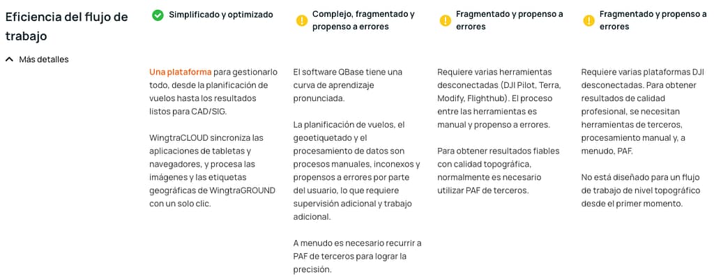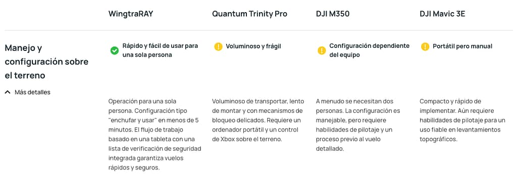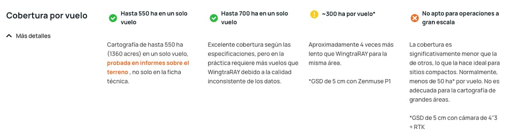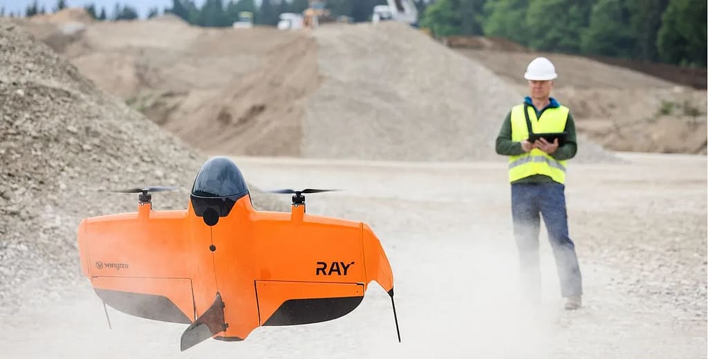 El Wingtra RAY es un dron de mapeo y reconocimiento diseñado para entregar resultados rápidos y confianza total en el trabajo de campo con un tiempo de vuelo de hasta 59 minutos, permite cubrir extensas áreas (aproximadamente 550 hectáreas en un solo vuelo). Su diseño VTOL (despegue y aterrizaje vertical) facilita operaciones en terrenos difíciles y espacios reducidos, mientras que su aerodinámica eficiente y batería de alta capacidad maximizan la autonomía.