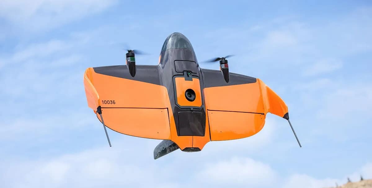 El Wingtra RAY es un dron de mapeo y reconocimiento diseñado para entregar resultados rápidos y confianza total en el trabajo de campo con un tiempo de vuelo de hasta 59 minutos, permite cubrir extensas áreas (aproximadamente 550 hectáreas en un solo vuelo). Su diseño VTOL (despegue y aterrizaje vertical) facilita operaciones en terrenos difíciles y espacios reducidos, mientras que su aerodinámica eficiente y batería de alta capacidad maximizan la autonomía.
